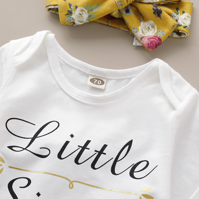 - body alb cu maneca lunga, cu inscripie "Little sister", se inchide cu capse intre picioruse;