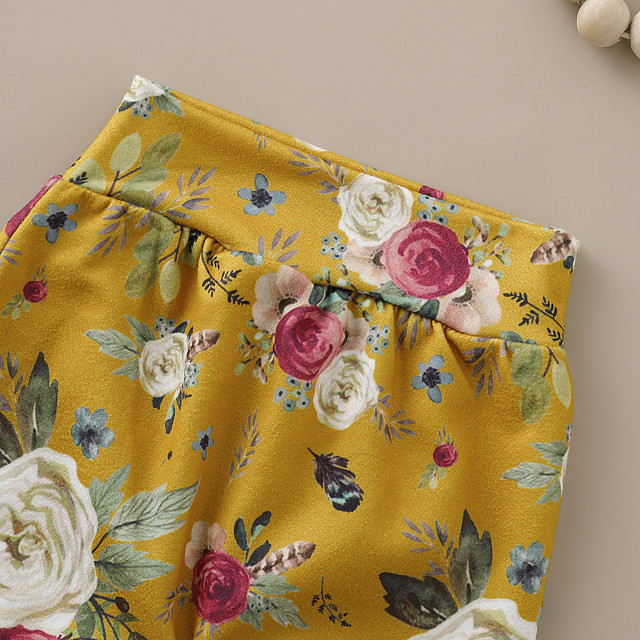 - pantaloni galben mustar cu imprimeu inflorat;