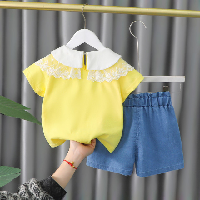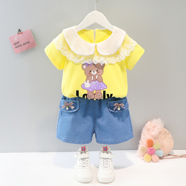 Costumas cu bluzita galbena si pantalonasi din blugi - bear (marime