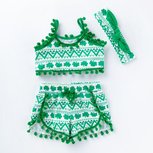 - maiou scurt cu bretelute, alb cu imprimeu verde si cu ciucurei verzi pe margini;