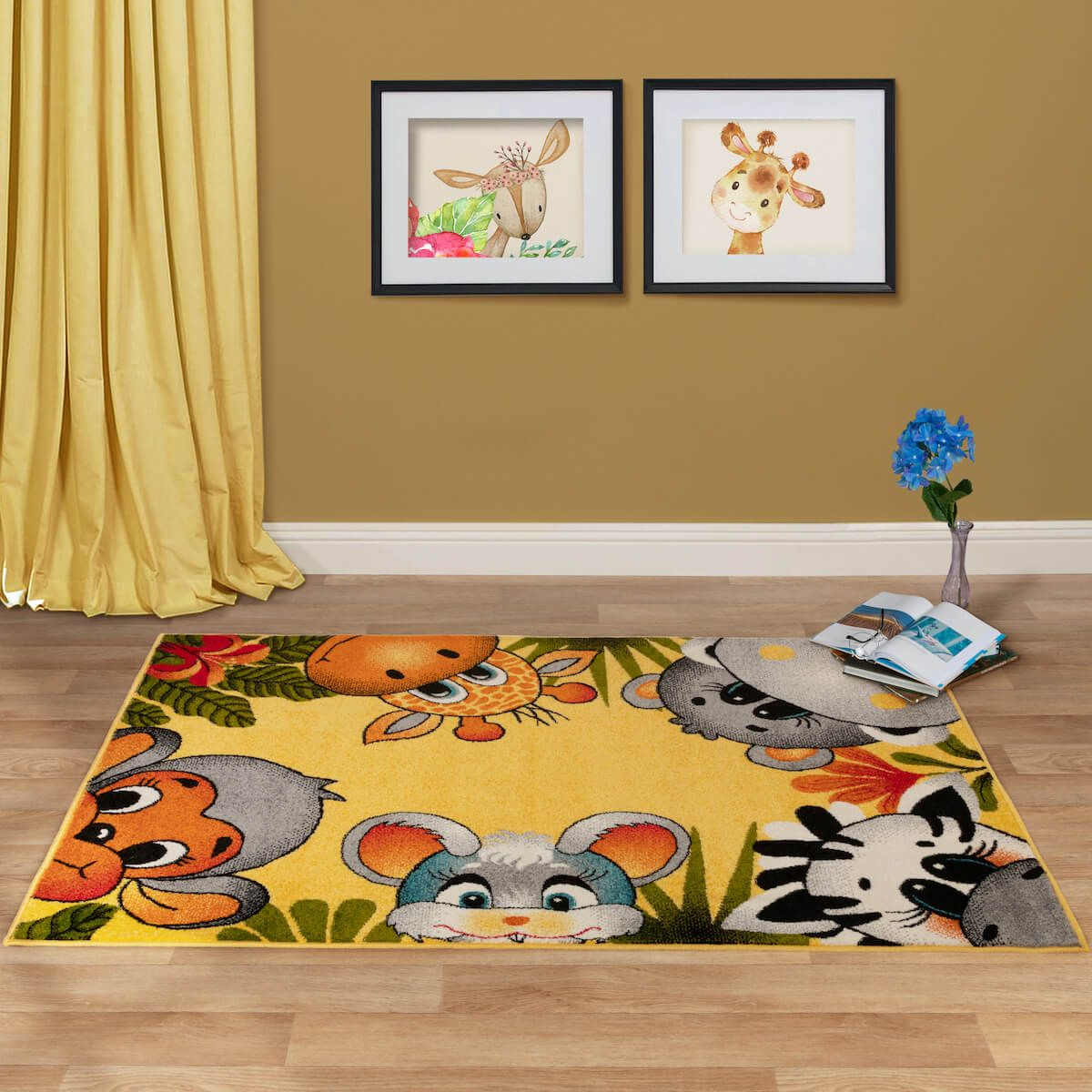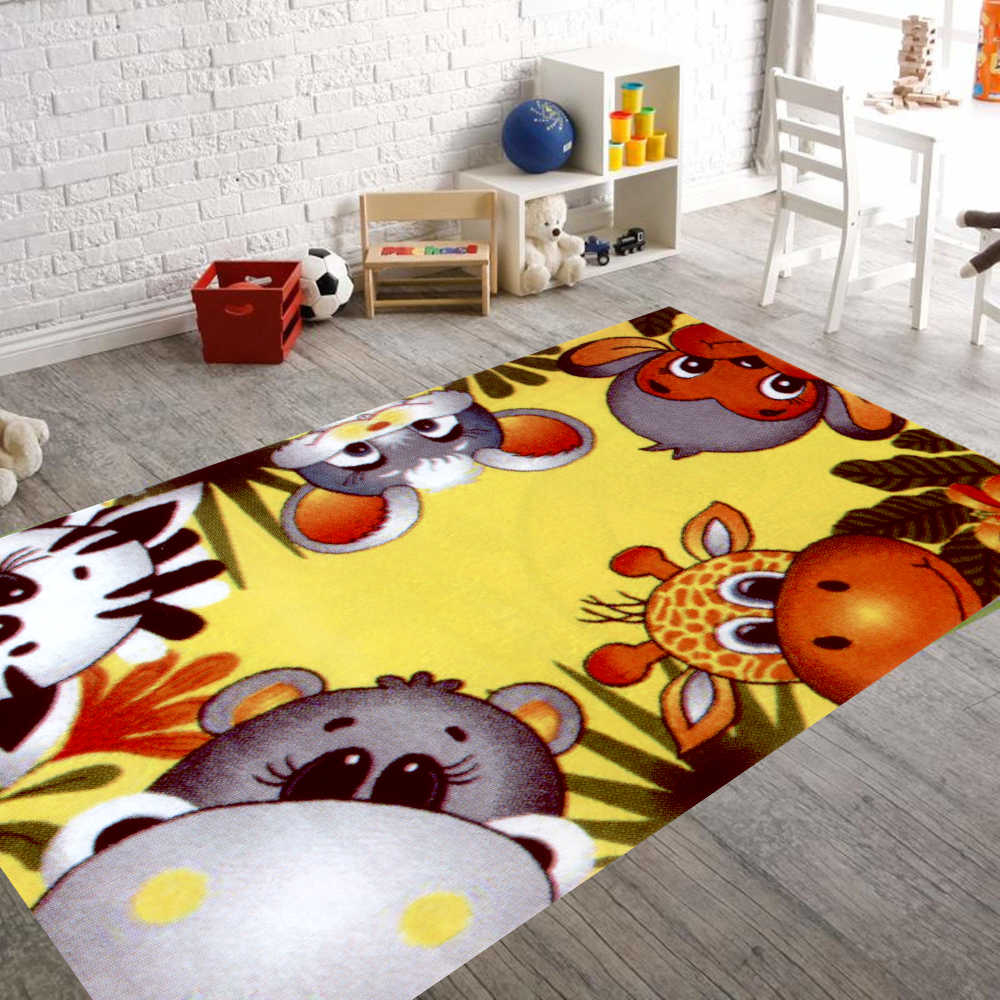 Covor camera copii, model kolibri 11058 150, animalute, galben