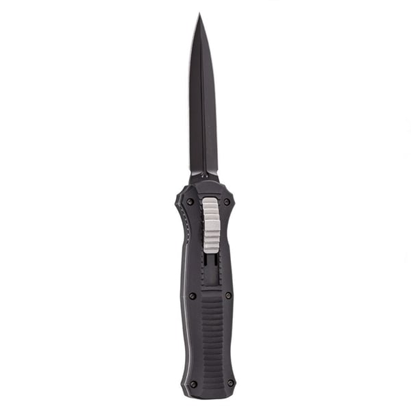 Deschiderea prin presiune se realizează folosind un buton mare cromat cu defilare frontală, pur și simplu împingeți înainte pentru a scoate lama înainte; Lama se retrage în mâner apăsând butonul înapoi.