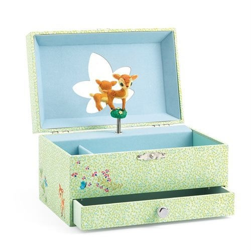 Cutie muzicală cu figurină căprioara, pentru bijuterii, cu sertar. Melodie: Povestiri din pădurea vieneză.