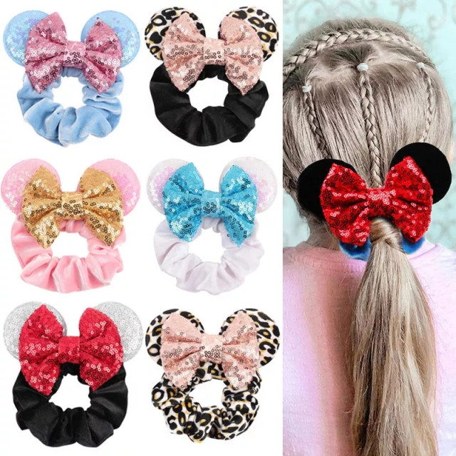 Elastic de par imbracat in catifea cu urechiuse si fundita cu paiete. Este potrivit pentru coafurile cochete ale micutelor.