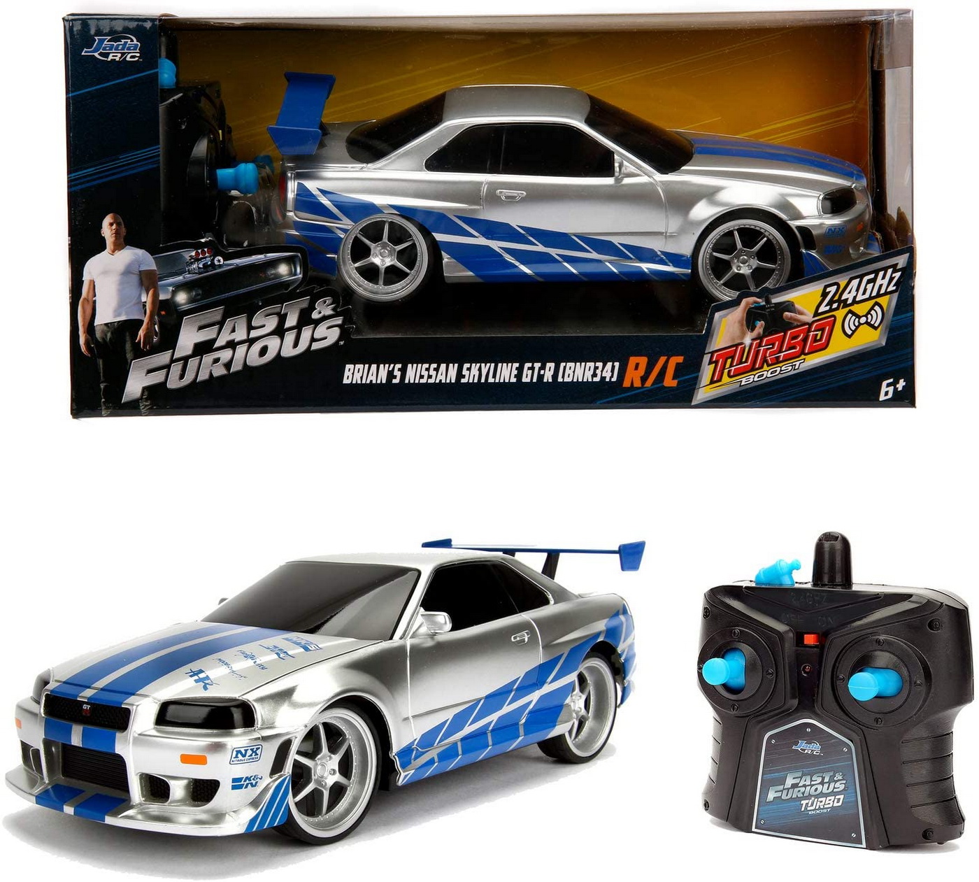 Invita-ti prietenii la joaca pentru a va intrece cu masina preferata din Fast and Furious. Masinuta Jada Toys Nissan Skyline GTR poate fi controlata la distanta cu ajutorul telecomenzii la o frecventa de 2,4 Ghz . Scara 124