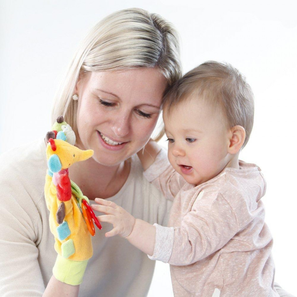 jucaria este confectionata dintr-un material viu colorat foarte placut la atingere si are o multime de accesorii: oglinda, forme si 2 animalute simpatice copilasul va urmari cu mare interes miscarea degetelor cu marionete, in timp ce tu vei inventa diferite basme doar pentru el bebelusul va fi cu siguranta atras de sunetele emise de jucarie este ideala pentru dezvoltarea perceptiei si a imaginatiei instructiuni de intretinere: spalare manualaFunctii: