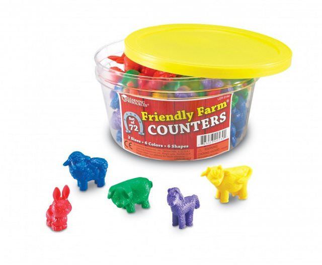 Activitati ca numararea, potrivirea si sortarea prind viata cu aceste animale de ferma, dragute si prietenoase. Animalele mamici si puii sunt de 6 tipuri, 6 culori si doua marimi. Confectionate din cauciuc fin, masoara 2.5 cm si 4.5 cm.