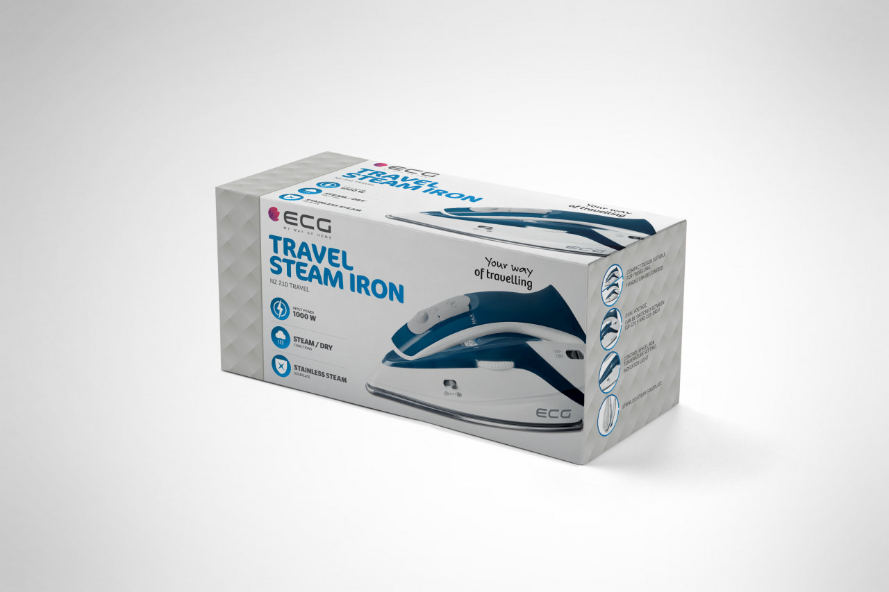 Fier de calcat pentru voiaj ecg nz 210, talpa otel inoxidabil, 1000 w, abur