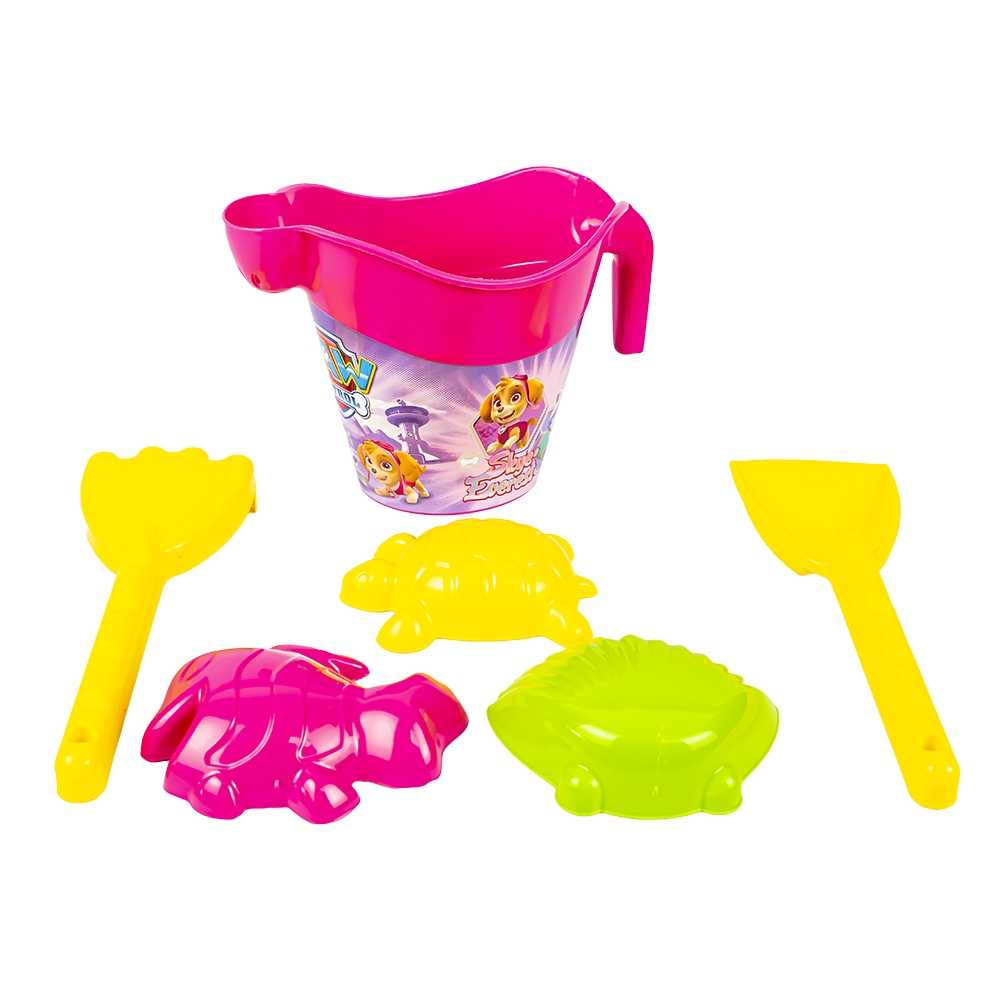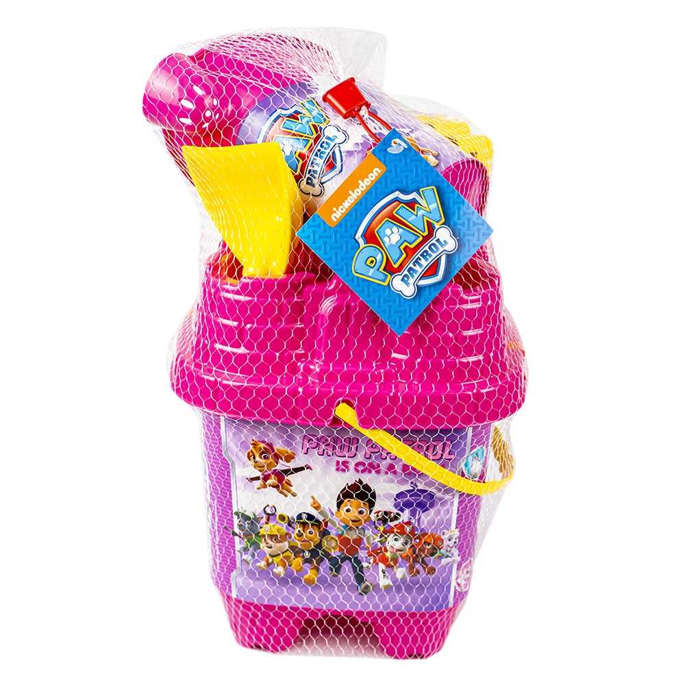 Galetusa nisip Castel+acces.Paw Patrol/20cm- Setul este confectionat din material plastic si contine o galetusa, sita sub forma de castel, lopatica, grebla, recipient pentru apa si forme pentru modelarea nisipului