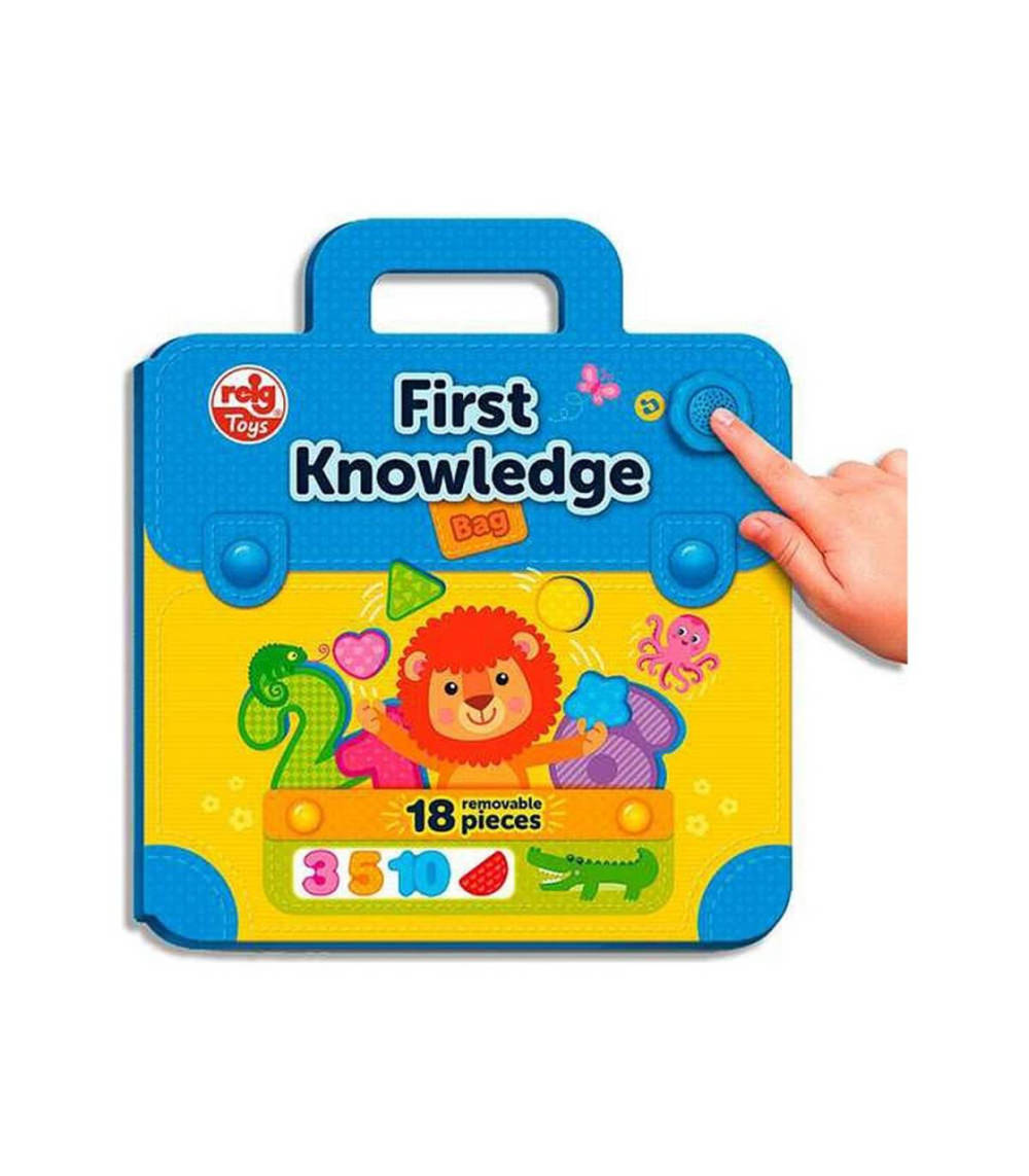 Gentuta interactiva cu sunete, cu maner facil pentru transport. Cei mici se vor distra ascultand cele 20 de propozitii, sunete si melodii in limba engleza. Jucaria contine 18 forme detasabile din material moale sub care se regasesc diverse imagini. Copiii pot aranja piesele de puzzle, pot numara animalele din imagini, pot recunoaste si denumi diversele cifre si forme geometrice, exersand in mod distractiv limba engleza.
