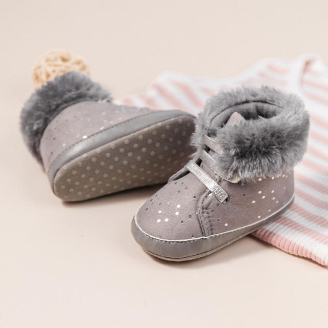 Ghetute gri pentru fetite - shinny (marime disponibila: 6-9 luni (marimea 19