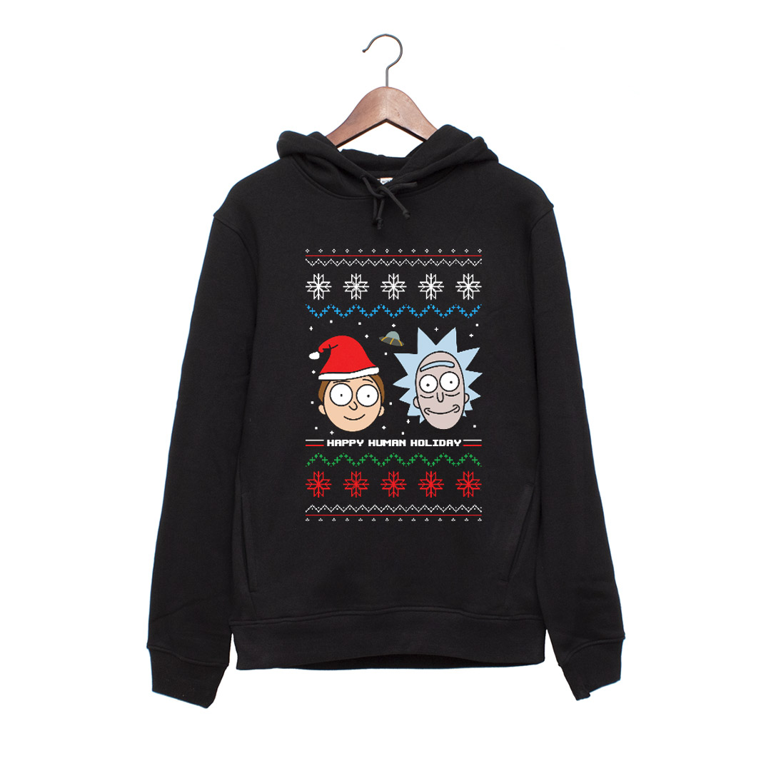 Hanorac personalizat negru unisex rick and morty christmas