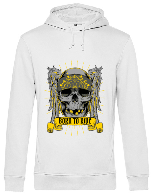 Hoodie barbat cu gluga Born to ride AlbTip produs: hoodie bărbat cu glugă si buzunar