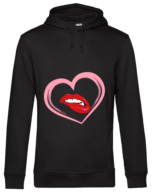 Hoodie barbat cu gluga buze si inima negru
