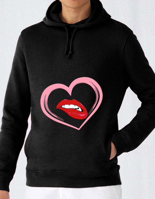 Hoodie barbat cu gluga buze si inima Negru
