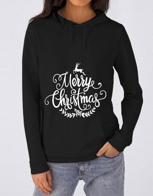 Hoodie dama cu gluga Merry Christmas NegruTip produs: hoodie damă cu glugă și buzunar