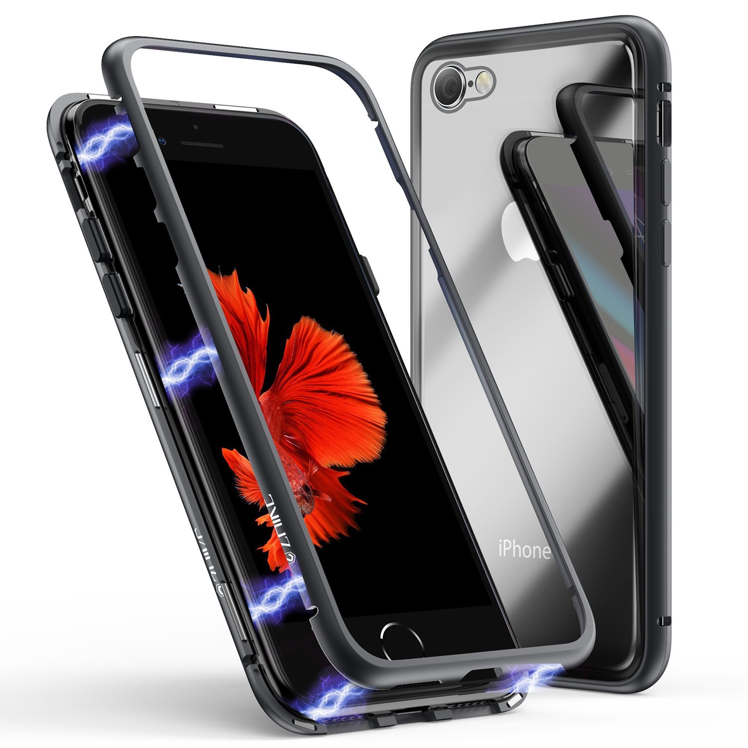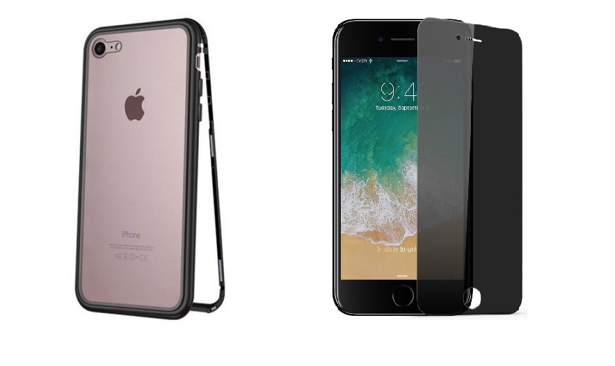 Husa apple iphone 7 magnetica cu spate din sticla securizata si folie privacy pentru ecran, mystyle perfect fit