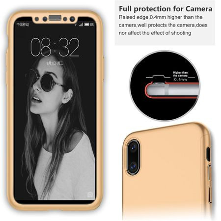 Husa apple iphone x, fullbody auriu, acoperire completa 360 grade cu folie de sticla gratis