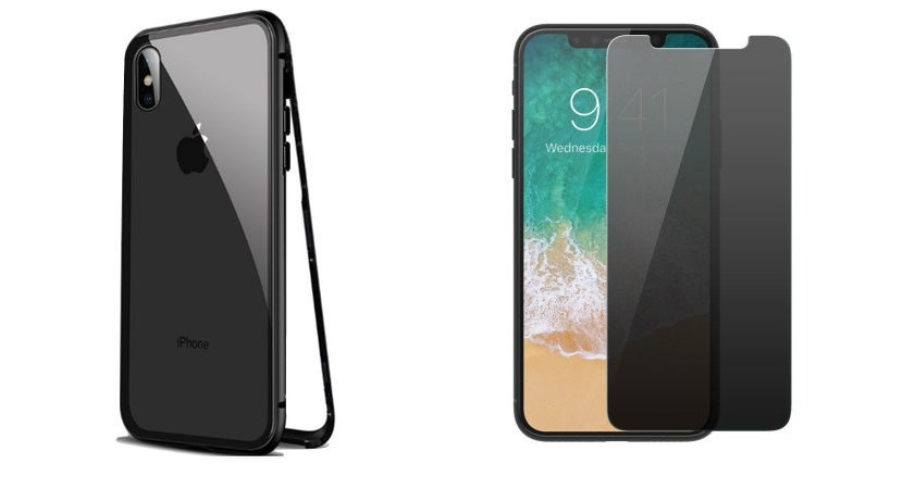 Husa apple iphone x magnetica cu spate din sticla securizata si folie privacy pentru ecran, perfect fit
