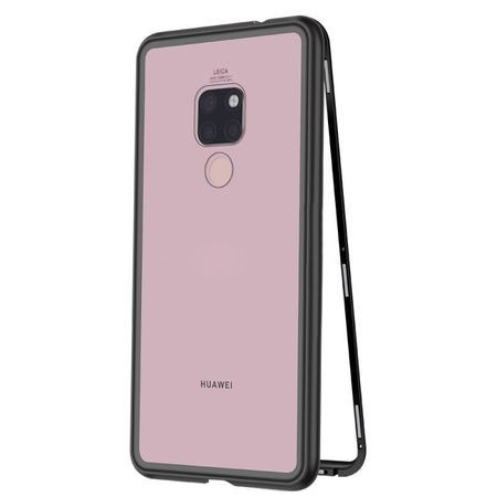 Husa huawei mate 20 magnetica black, perfect fit cu spate de sticla securizata premium