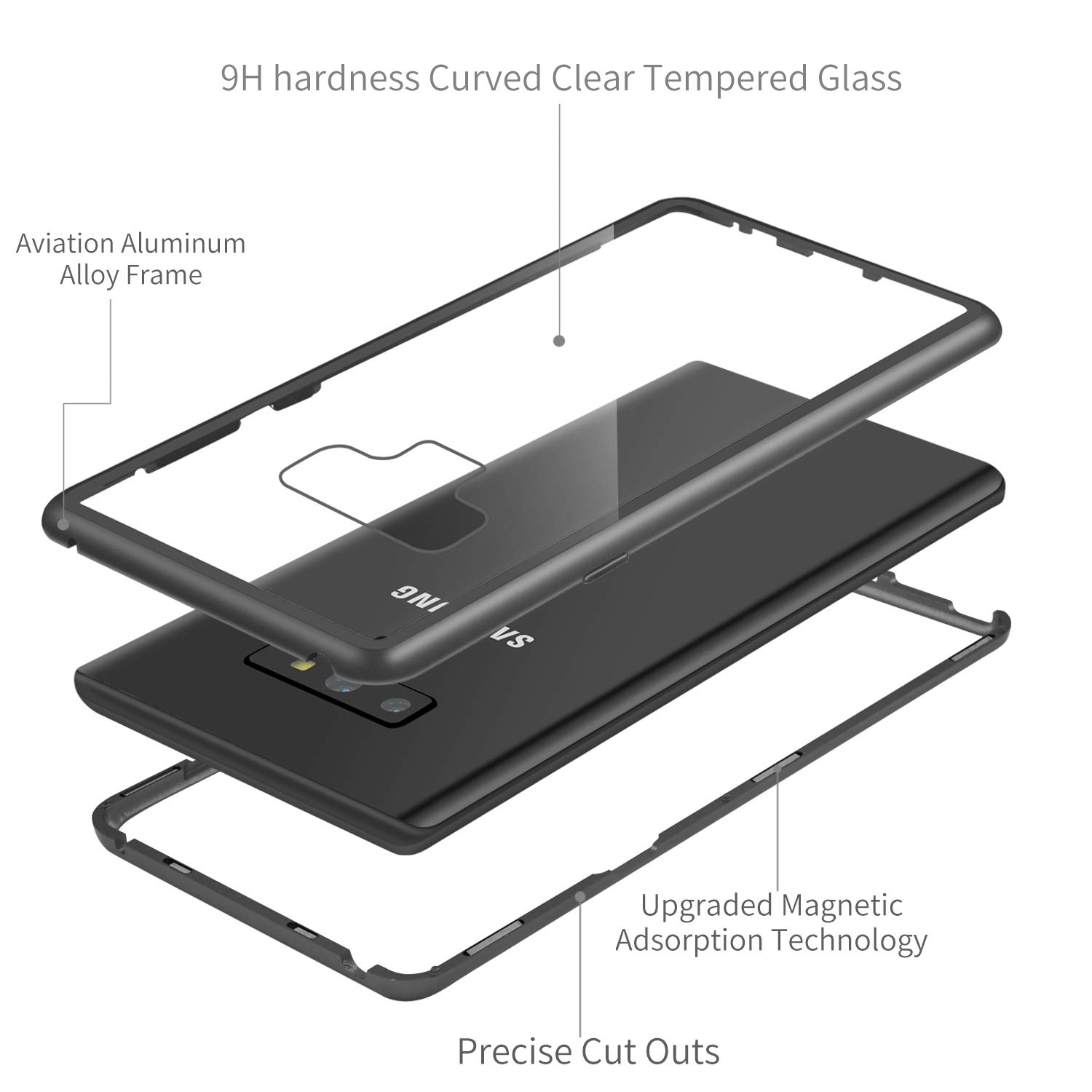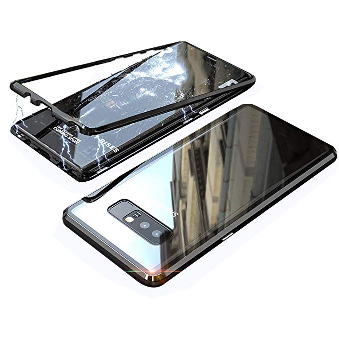 Husa samsung galaxy s8 magnetica 360 grade negru, cu spate de sticla securizata premium