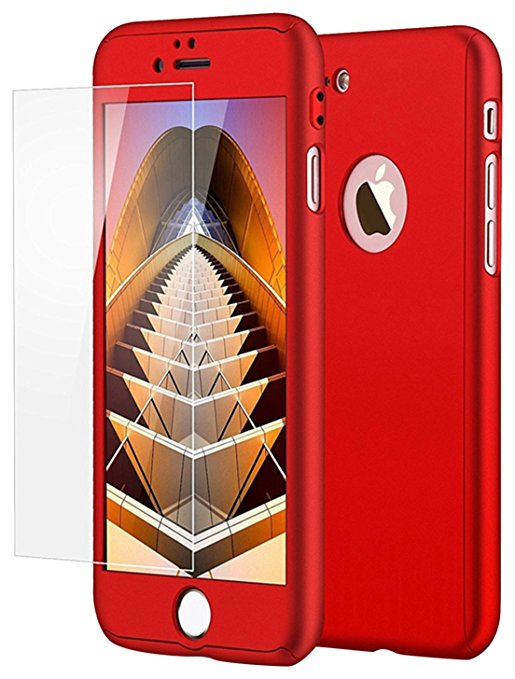 Husa telefon iphone 6/6s ofera protectie 360° ultrasubtire + folie sticla securizata - red