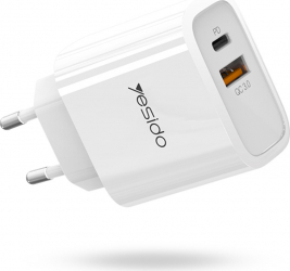 Incarcator retea Fast Charge Yesido Explore Type-C PD + USB QuickCharge 3.0 18W White