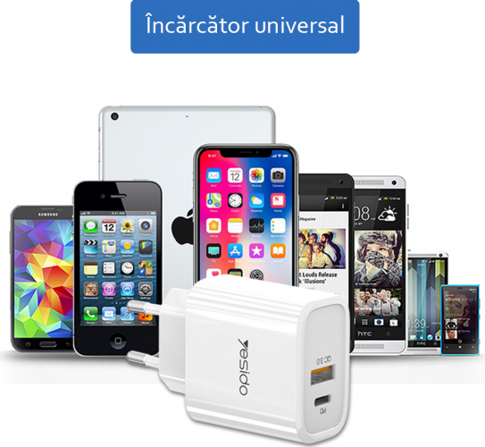 Model compatibilUniversalFunctiiDesign compact Usor de transportat Anti-incendiu Incarcare ultra-rapida 1 x SmartCharge Quick Charge 3.0 Fast Charge Incarca 2 telefoane mobile simultan Power DeliveryContinut pachet1 incarcator priza Yesido ExploreMaterialABS/MetalLungime8.4 cmLatime4.6 cmInaltime2.7 cmGreutate58 gCuloareAlb