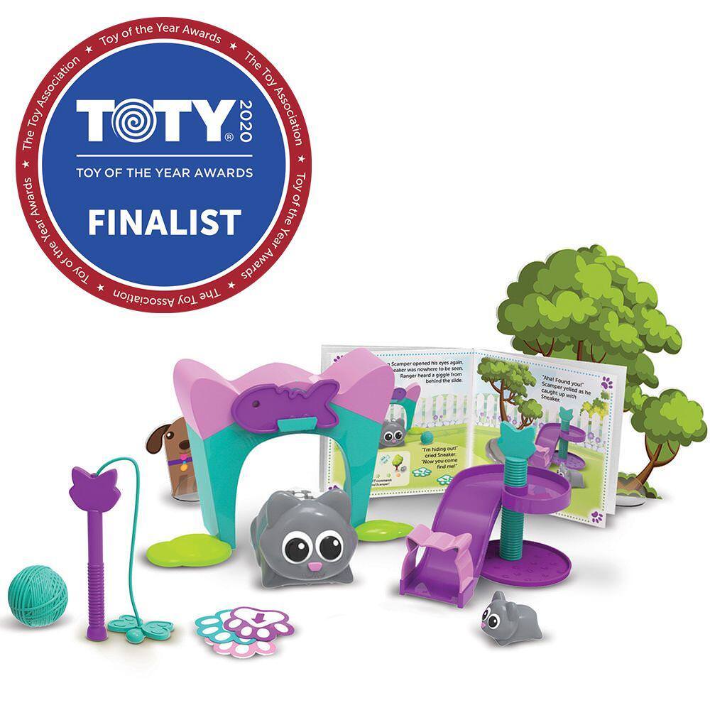 urmeaza instructiunile si descopera daca poti sa o programezi pe Scamper sa se joace de-a v-ati ascunselea, sa prinda fluturasul de la jucaria speciala pentru pisicute sau sa o prinda pe micuta Sneaker cand se da pe tobogan