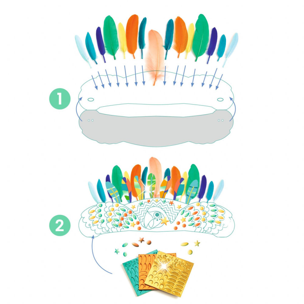 bentiță autocolantă din material textil, 15 pene sintetice colorate, 7