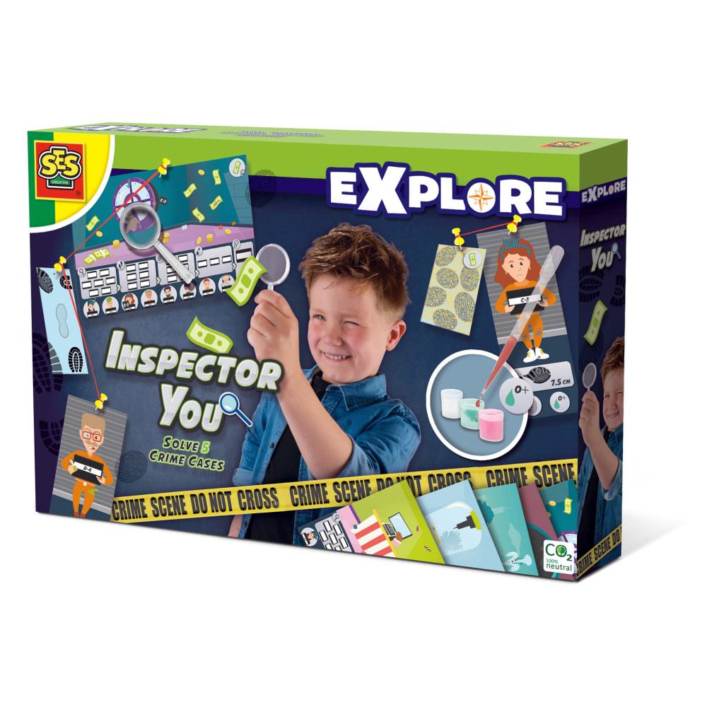 Contine: 5 cazuri cu indicii ascunse; 8 suspecti; amprente; urme de pasi; analize de sange; banda de masurare; lupa; banda de bariera.