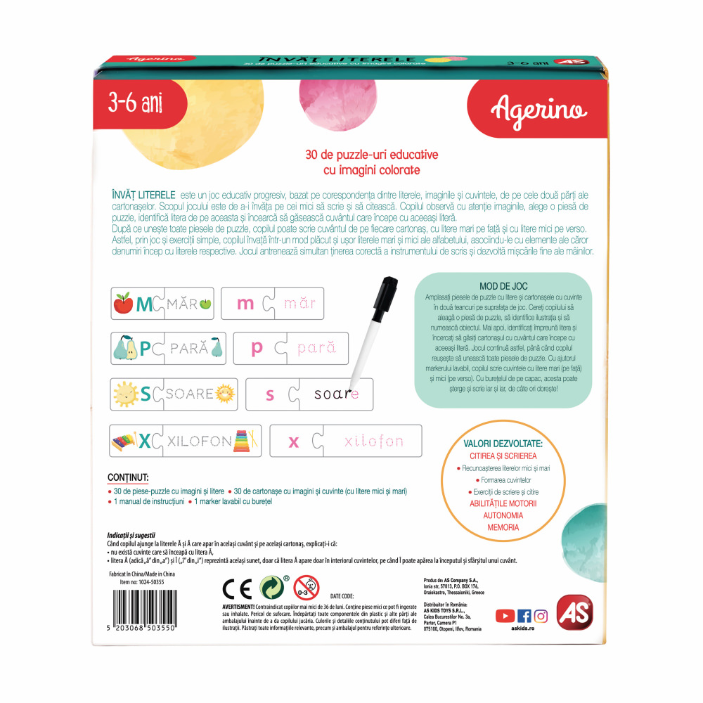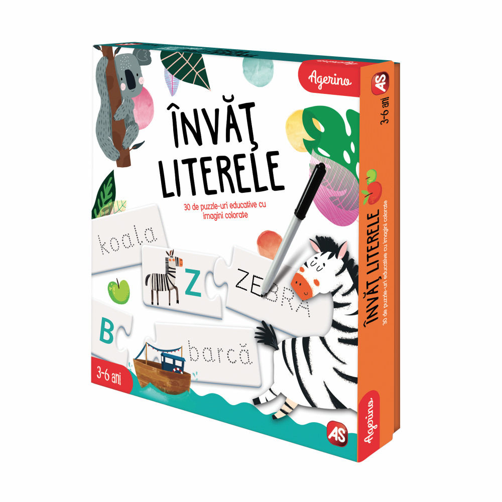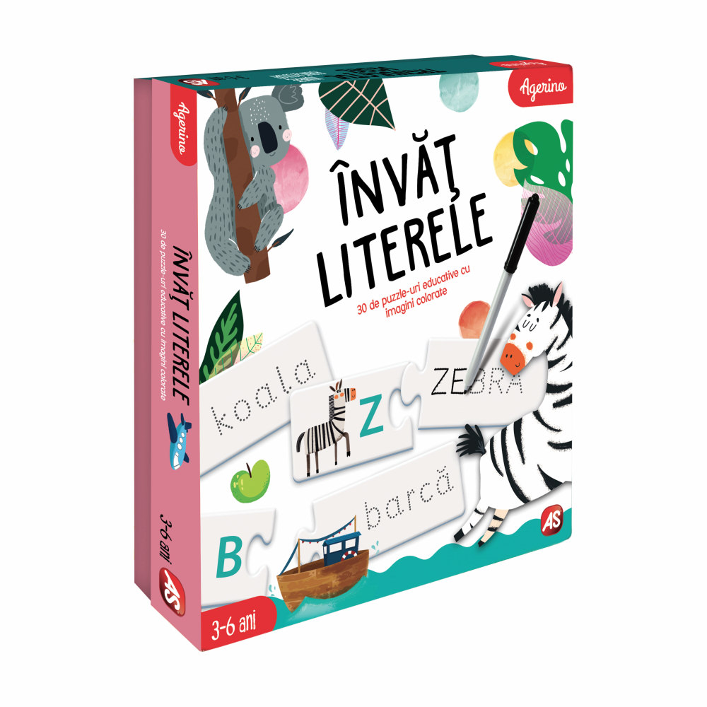 Invat literele este un joc educativ progresiv, bazat pe corespondenta dintre litere, imagini si cuvinte, de pe cele doua parti ale cartonaselor, pentru a-i invata pe cei mici sa scrie si sa citeasca.