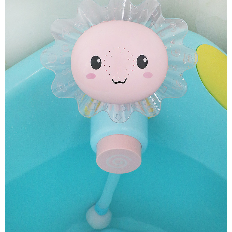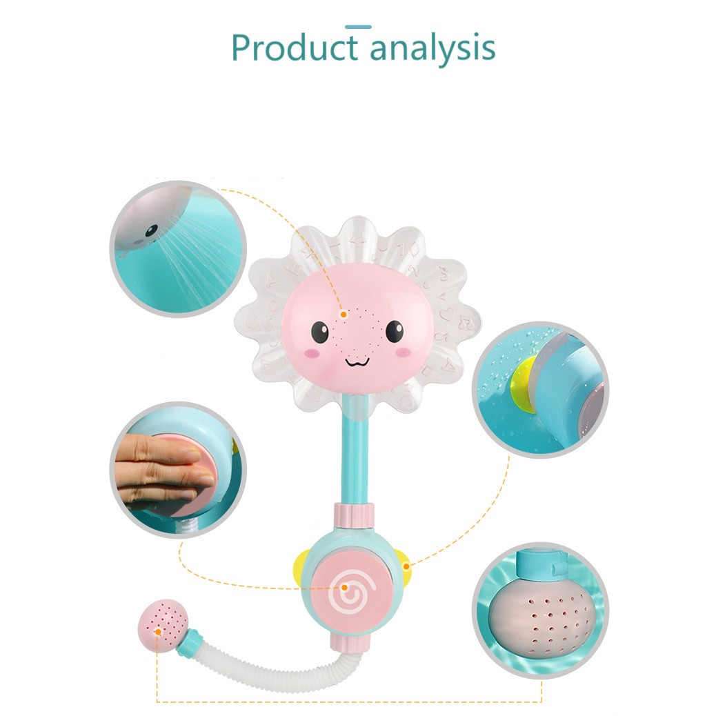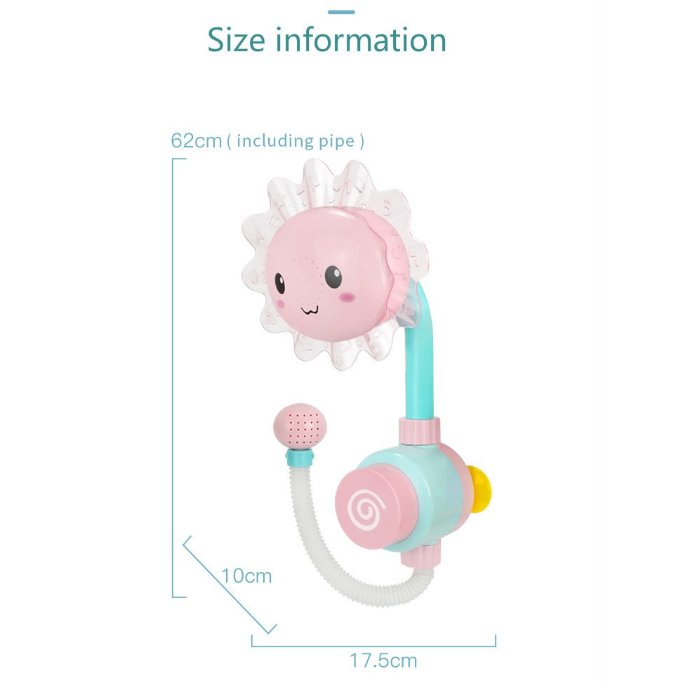 Jucaria de baie,sub forma de floare,va face baita copilului mult mai placuta si mai antrenanta.Astfel se poate spala precum un adult,la dus copilul apasa butonul din mijloc si apa iese.