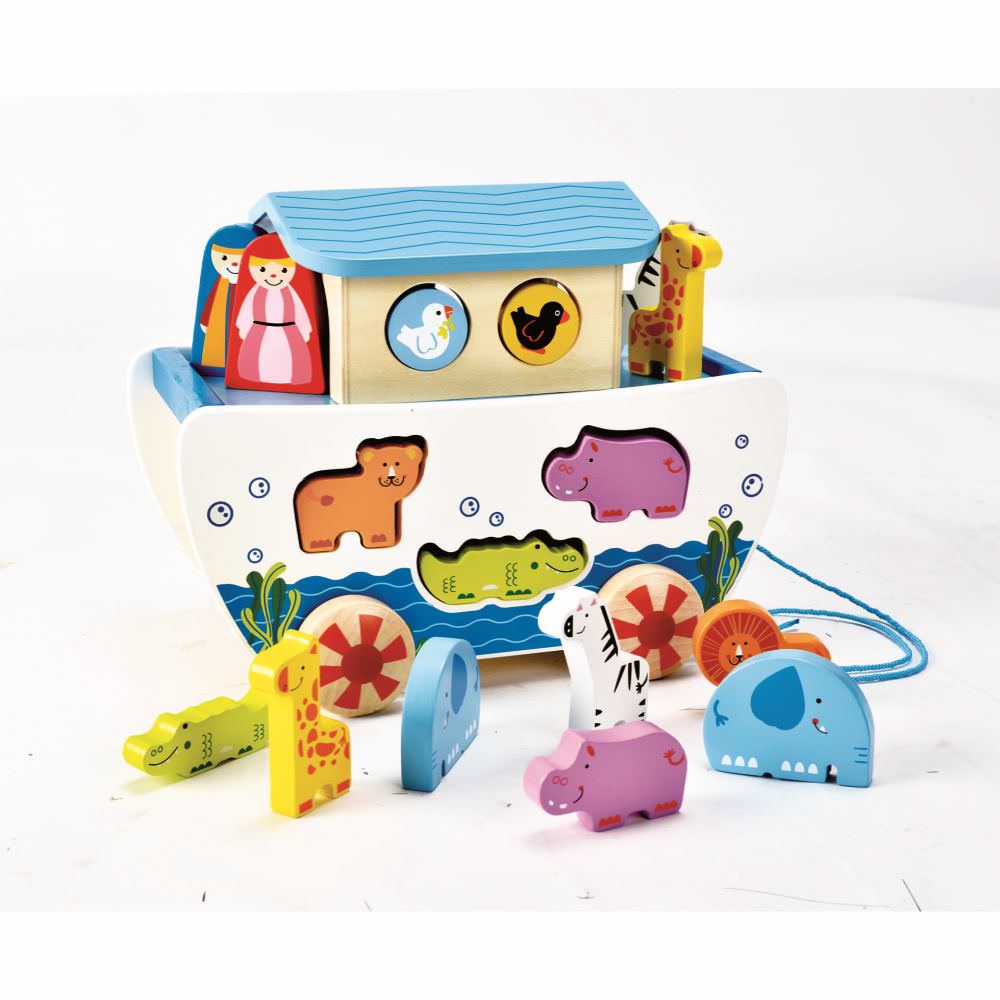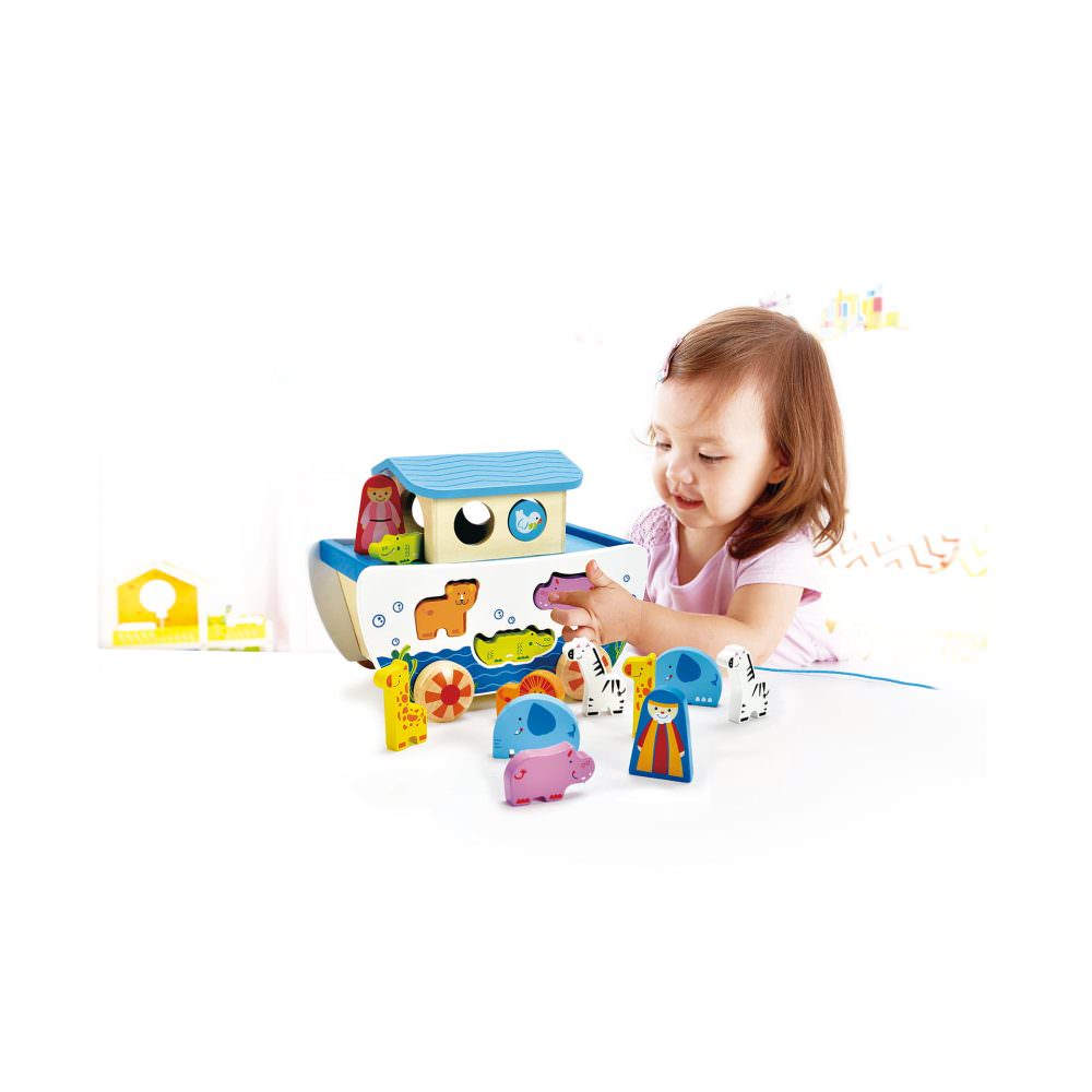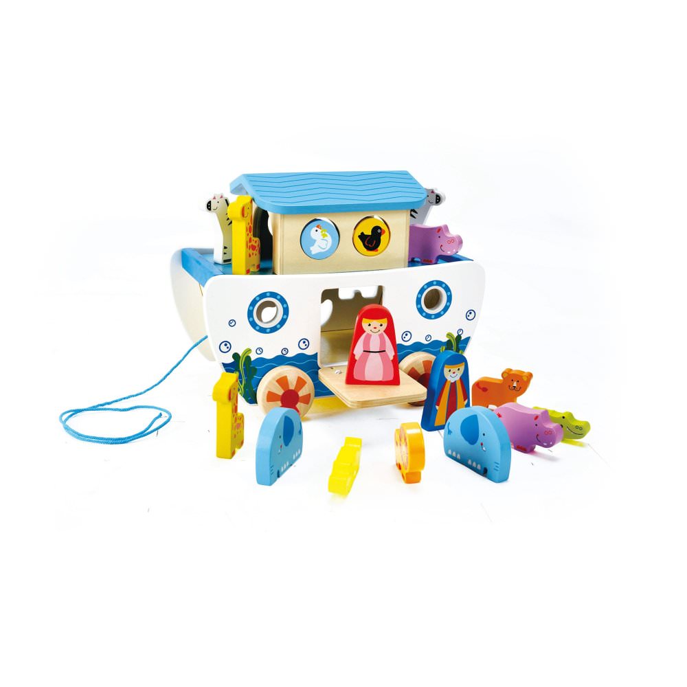 Jucarie din lemn - arca lui noe de tras si sortator de forme