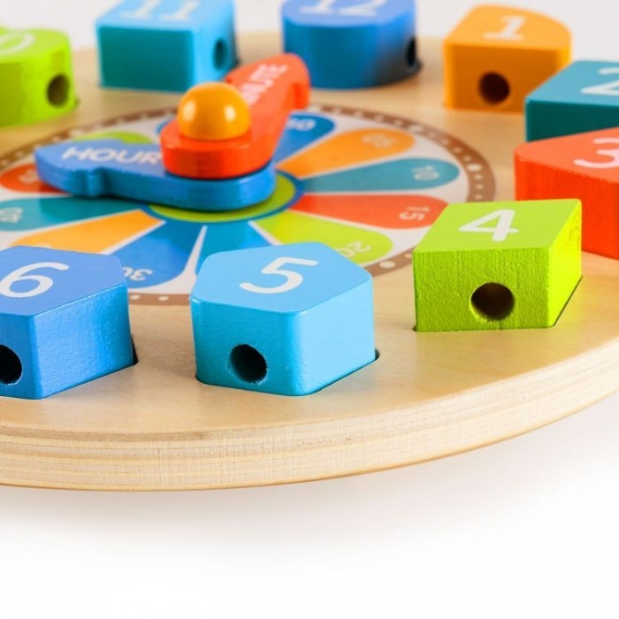 Ceasul este plin de elemente mobile, colorate, care vor atrage atentia fiecarui copil. Constructia din lemn face ca jucaria sa fie placuta la atingere si rezistenta la deteriorare.
