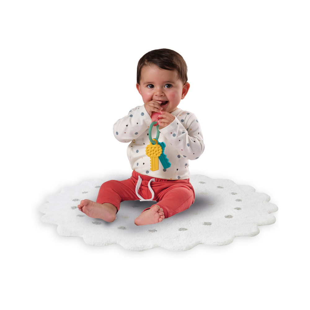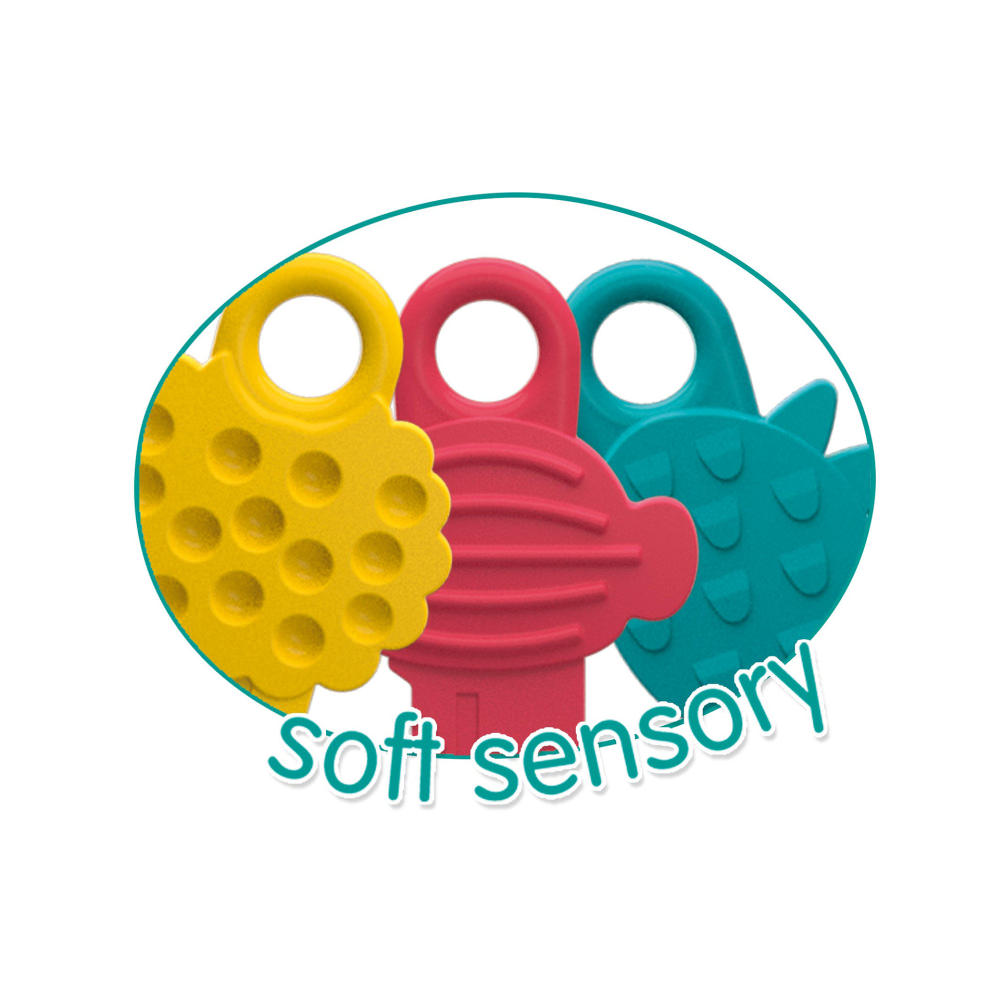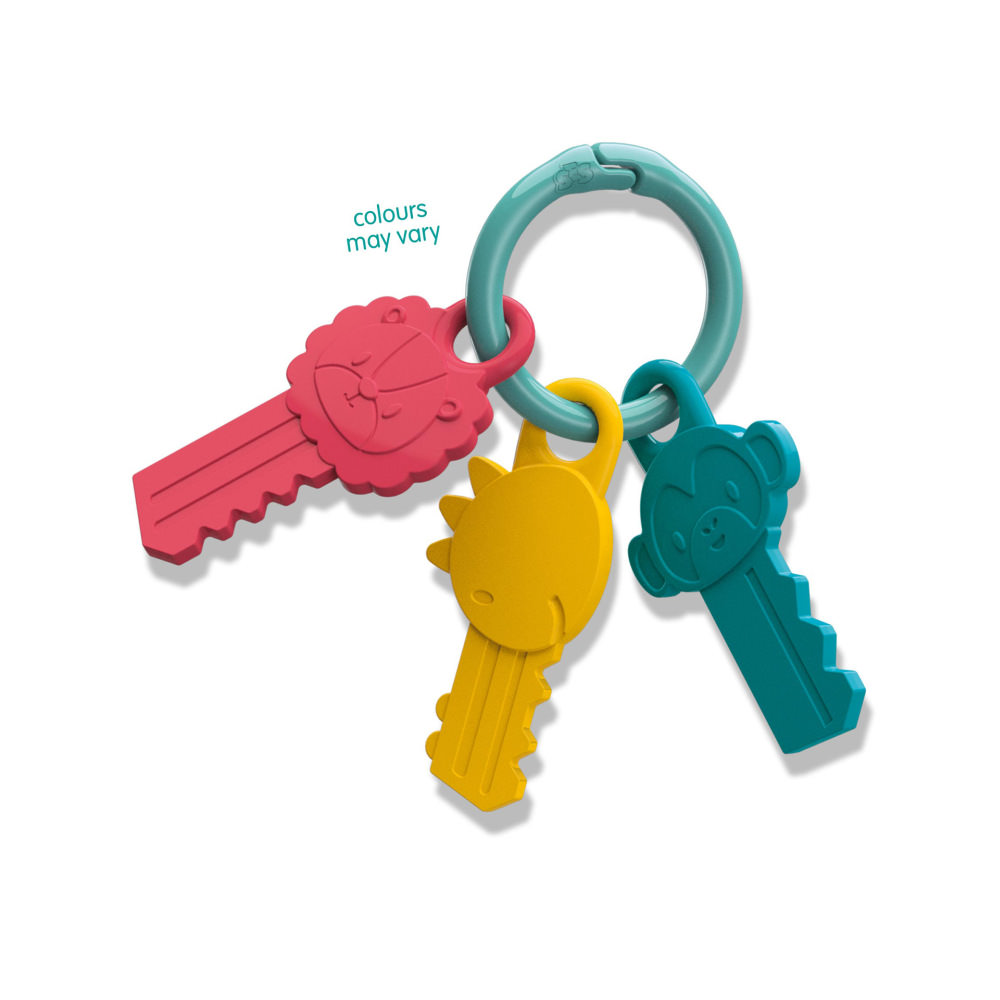 Musca, ciuguleste, simte, joaca... Cu acest breloc de joc senzorial cu trei chei colorate, micutul tau se va distra de minune. Cheile au capete dragute de animale si texturi multiple. Culorile brelocului pot varia in functie de articol, dar sunt intotdeauna distractive!