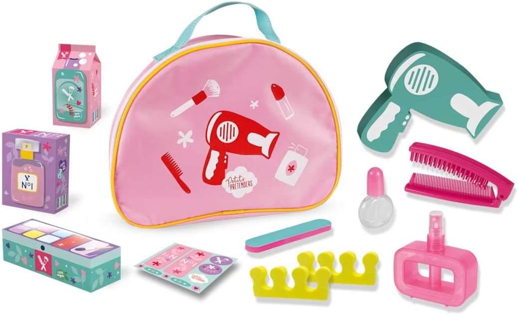 Iti infiintezi propriul salon de infrumusetare? Sau ai prefera sa te faci sa arati frumos in fata oglinzii? Aceasta cutie de frumusete bine umpluta are tot ce ai nevoie. Doar deschideti fermoarul si incepeti prin a va pieptana parul si pretindeti ca uscati parul cu uscatorul de par din spuma. Ai un client nou la salonul tau de infrumusetare?