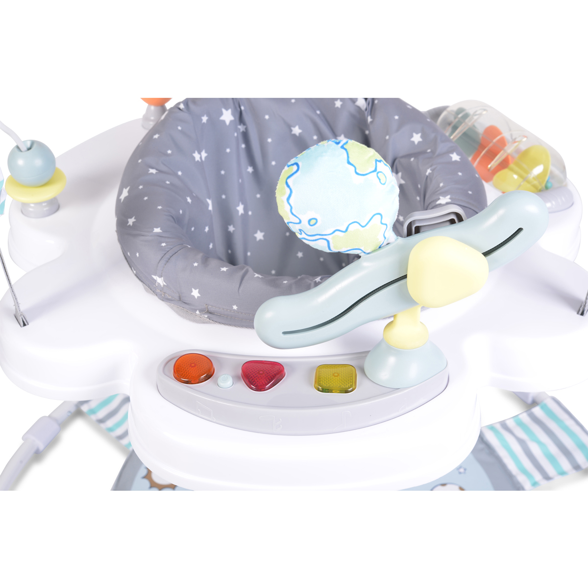 Centrul de activitati Bon Voyage aduce totul la marime mica pentru exploratori! Totul se petrece in deplina siguranta. Bebelusul face sarituri de bucurie pentru a atinge jucariile. Scaunul se invarte pentru a permite accesul bebelusului la toate jucariile.
