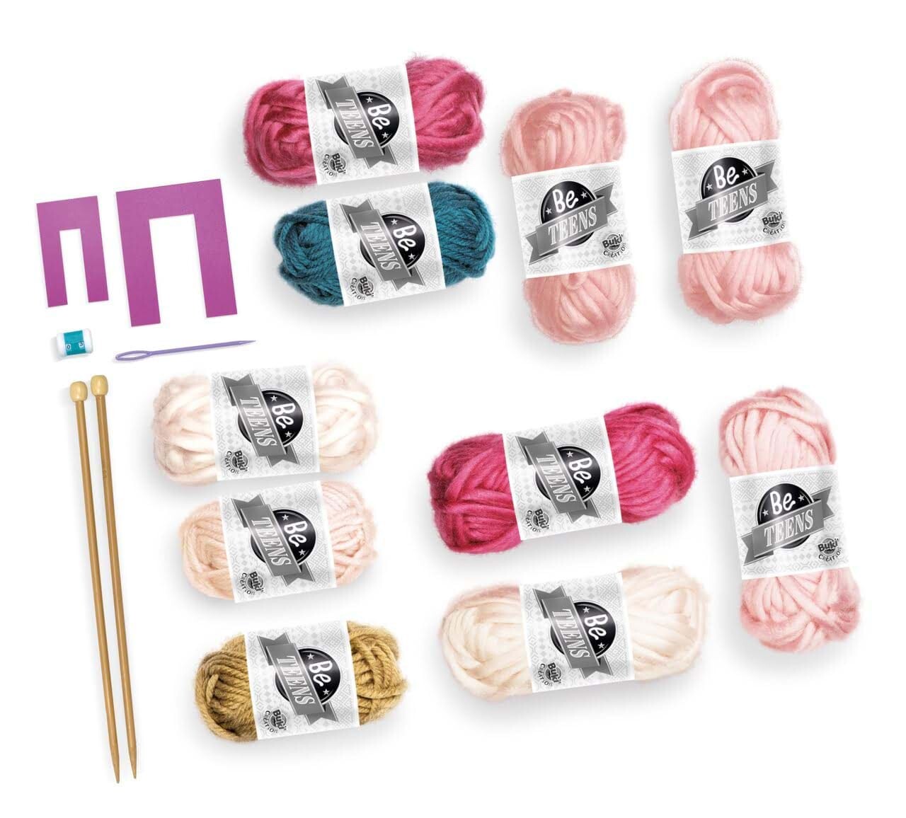 Contine: 10 gheme de lana, 2 andrele de tricotat, 1 contor de randuri, 2 suporturi pentru ciucuri (pompon), 1 ac de plastic, instructiuni ilustrate