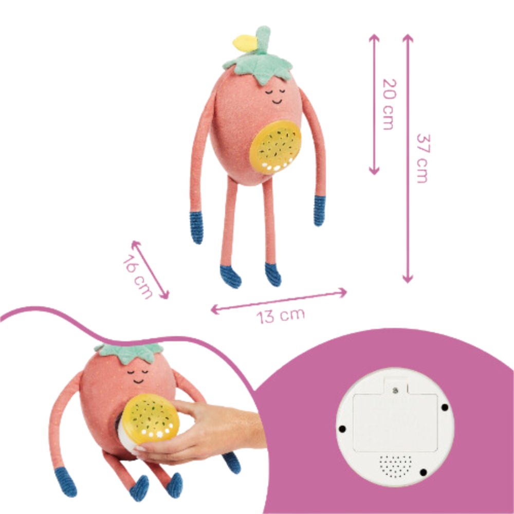 Lampa de veghe barnabe in forma de capsuna cu proiectii si sunete linistitoare badabulle