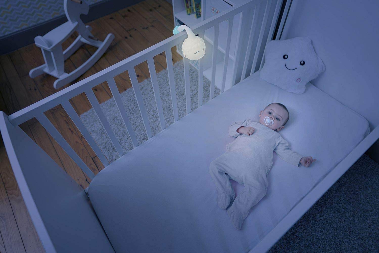 Culorile delicate pe care le emite (roz, albastru, violet si verde) ii vor oferi micutului sentimental de siguranta.