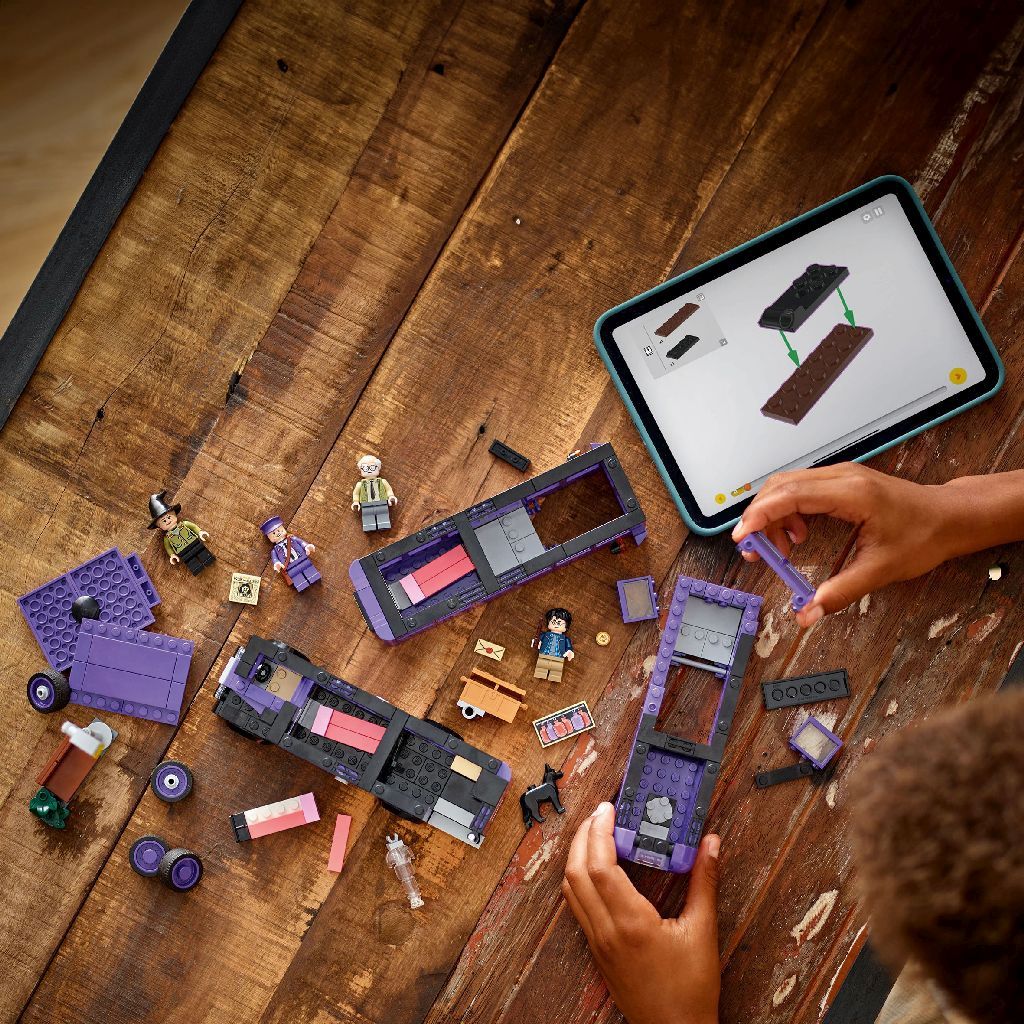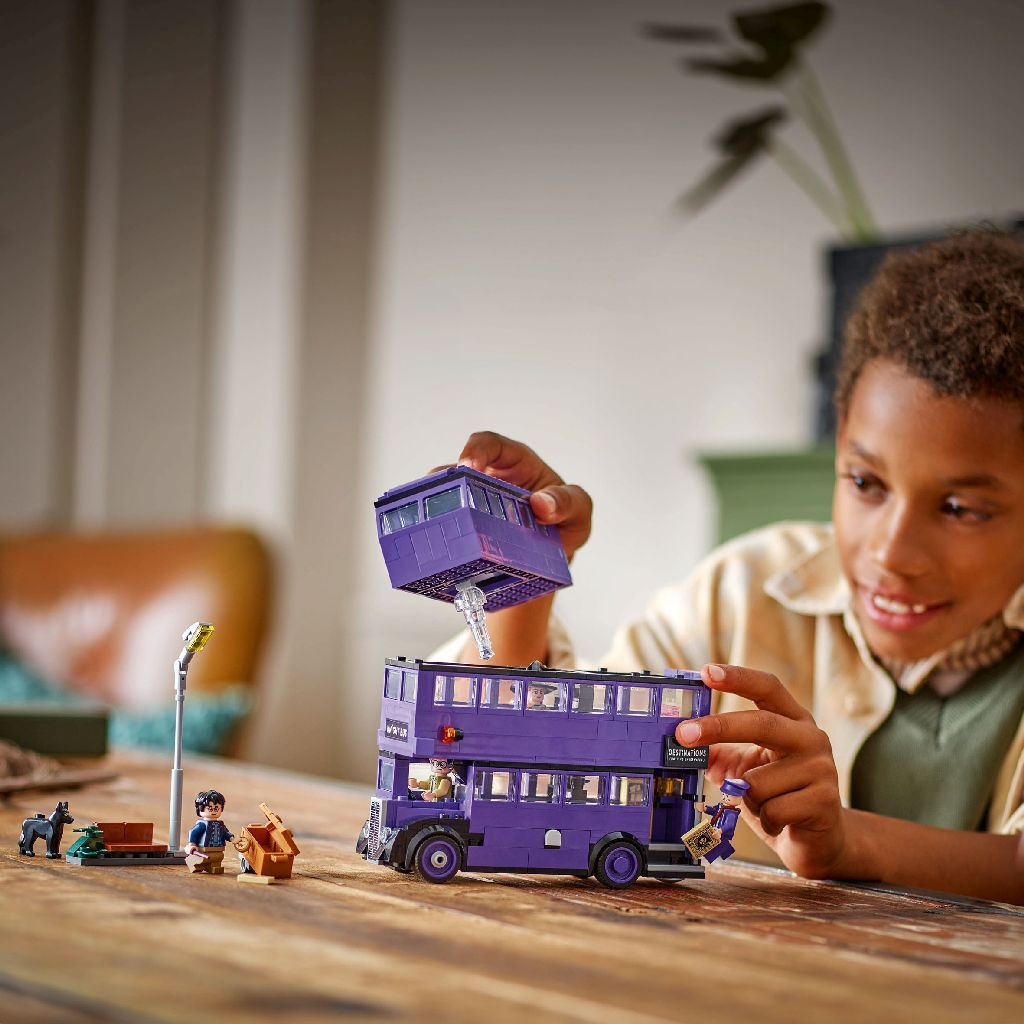Toata lumea la bord pentru o aventura palpitanta in Knight Bus&trade cu aceasta jucarie cu vehicul magic LEGO® Harry Potter&trade pentru copii (76446). O idee unica de cadou de zi de nastere sau oricand pentru baieti si fete de 8 ani si mai mari si pentru orice fani ocazionali care descopera magia Lumii Vrajitoriilor, acesta este cel mai detaliat model din caramizi LEGO al emblematicul autobuz cu trei etaje Knight Bus. Nivelurile superioare pot fi desprinse pentru acces usor la interior, unde gasesti paturi mobile si un candelabru care se leagana pentru ca joaca sa fie realista. Acest set de constructie cu jucarie magica include si 5 personaje LEGO Harry Potter Harry Potter, Ernie Prang, Stan Shunpike, o vrajitoare adormita si Padfoot&trade pentru a recrea scene memorabile din Harry Potter si prizonierul din Azkaban&trade. Alte detalii autentice, intre care un stalp de iluminat construibil unde Harry a asteptat (si a fost speriat de Padfoot!) inainte de sosirea autobuzului Knight Bus, cufarul lui Harry si un element ziar Profetul zilei cu titlul de articol &bdquoEvadare din Azkaban&rdquo cresc posibilitatile creative de joaca pe roluri.