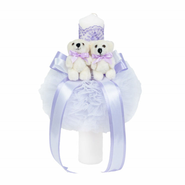 Lumanare botez 2 ursuleti, decor LILA, Denikos® 525