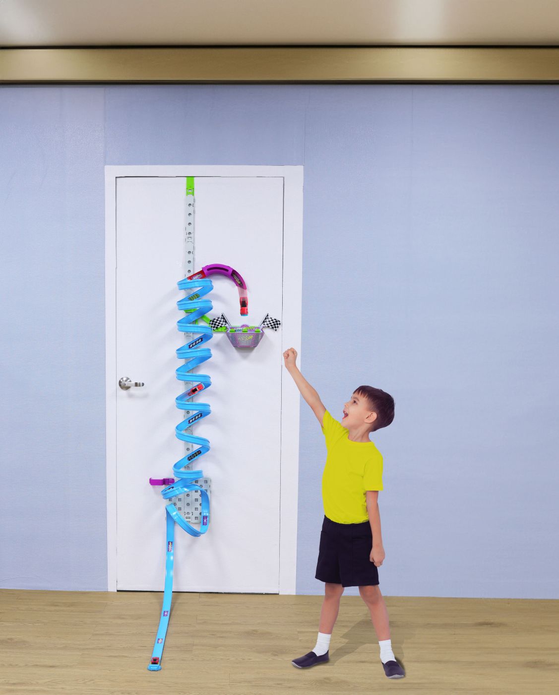 Pregateste-te pentru o cursa verticala spectaculoasa cu setul Cyber Racers Vertical Launch Track Set! Acest set inovator se agata de usa dormitorului tau si te provoaca sa lansezi masinile printr-un traseu cu bucle multiple, pana la atingerea liniei de sosire din stratosfera. Setul se monteaza pe usa dormitorului, economisind spatiu si oferind o experienta de joc unica. Traseul contine suficiente piese pentru a construi 10 bucle sau mai multe, creand un traseu vertical complex si provocator. Setul include 2 masinute pullback Cyber Racers, care se propulseaza singure dupa ce sunt trase inapoi, asigurand curse dinamice. Setul include conectori din plastic pentru asamblarea traseului si o agatatoare speciala pentru montarea pe usa. Traseul include o sectiune de intoarcere cu un obiectiv, care marcheaza linia de sosire si adauga un element de provocare. Traseul asamblat atinge o inaltime de aproximativ 2 metri, oferind o experienta de joc impresionanta. Setul este prezentat intr-o cutie cu fereastra, permitand vizualizarea continutului si oferind o optiune excelenta pentru cadou. Setul Cyber Racers Vertical Launch Track Set este o alegere excelenta pentru cei care cauta o experienta de joc unica si inovatoare. Cu traseul sau vertical montat pe usa, buclele multiple si masinutele pullback, acest set promite ore de distractie si competitie amicala.Descriere produs