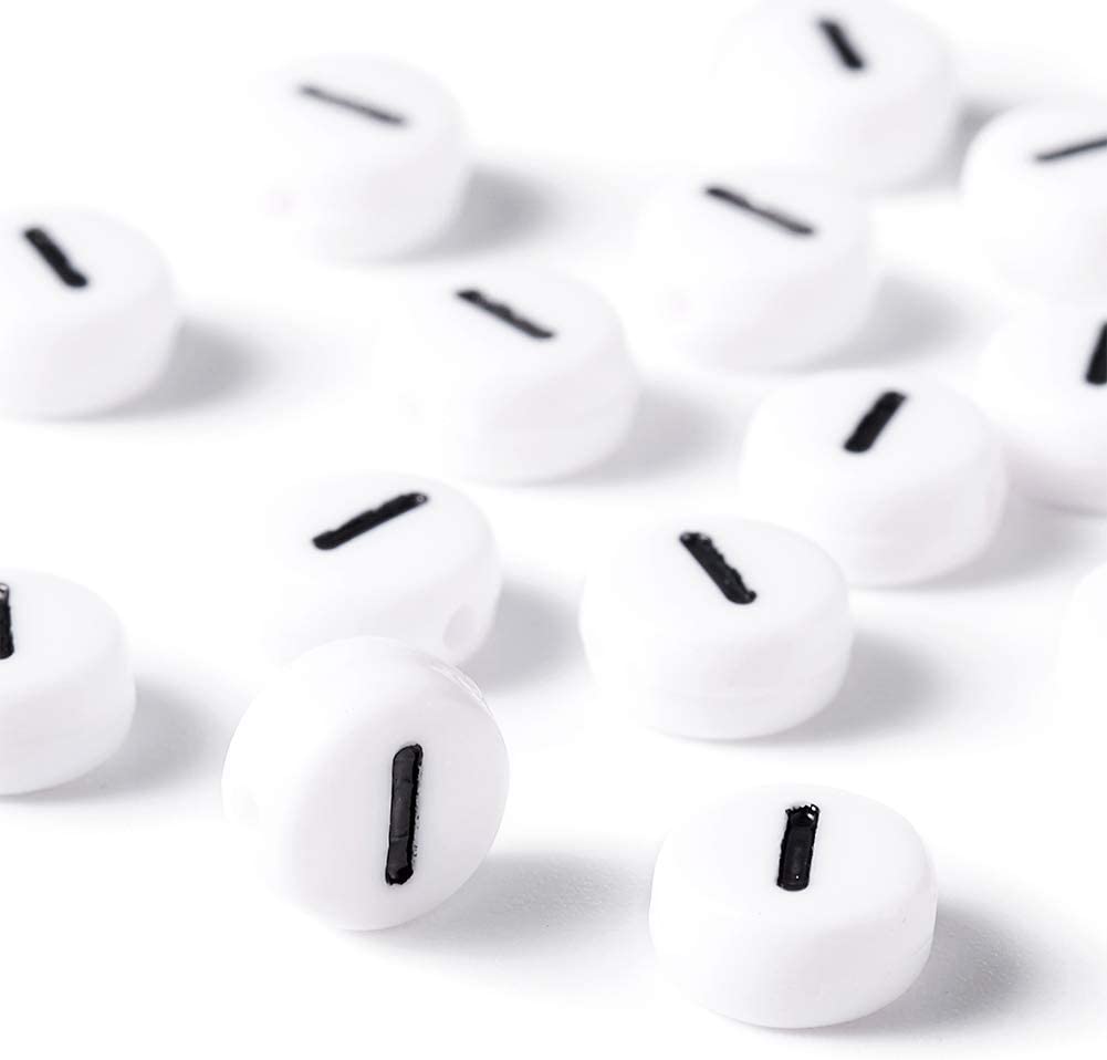 Margele acrlice cu litera I rotunde, 7 mm, White, 100 bucati, Vivo AK701