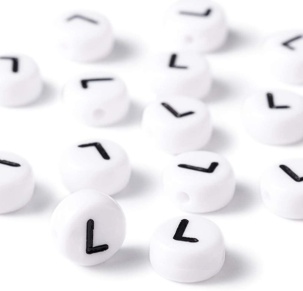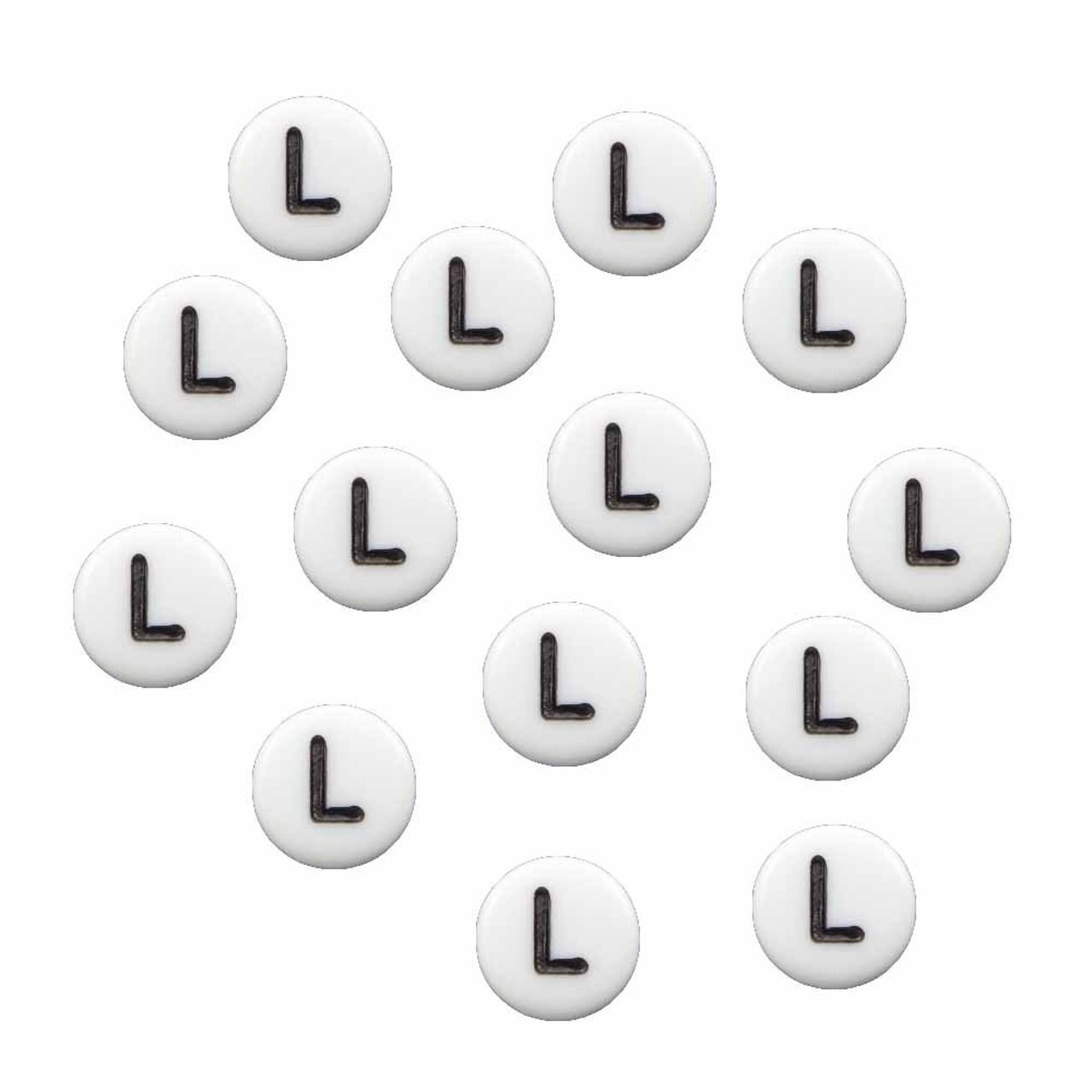 Margele acrlice cu litera L rotunde, 7 mm, White, 100 bucati, Vivo AK701