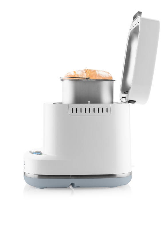 Caracteristici principale • Program PERSONALIZAT – permite setarea individuala a etapelor de preparare a painii • Selectie dimensiune paine: 0,5 kg / 0,75 kg / 1 kg • Selectie nivel rumenire: 3 trepte de intensitate a crustei • Forma de copt detasabila cu strat antiaderent – pentru curatare usoara • 1 carlig de framantare • Maner rabatabil practic pentru manipulare usoara a cuvei • Capac cu fereastra transparenta (BPA free) – pentru monitorizarea procesului de coacere • Afisaj clar cu indicarea stadiului de preparare • Semnal acustic pentru adaugarea ingredientelor suplimentare • Temporizator de 15 ore – functie de pornire intarziata • Functie automata de mentinere la cald (60 minute dupa finalizare) • Memorie in caz de pana de curent • Putere: 550 W Accesorii incluse Vas pentru copt, carlig de framantare, pahar gradat, lingura de masurat, carlig pentru extragere. 12 programe presetate • CLASIC – pentru paine alba din grau sau paine din secara bruna, dar si pentru paine aromata cu ierburi sau stafide • RAPID – pentru prepararea rapida a painii albe, de grau sau de secara; painea obtinuta este mai mica si are un miez dens • DULCE – pentru paini dulci, cu o crusta mai crocanta decat in modul clasic • INTEGRAL – pentru paine din faina integrala, cu continut redus de gluten • FARA GLUTEN – pentru prepararea painii fara gluten • ALUAT – pentru framantare si dospire fara coacere; ideal pentru rulouri, pizza, chifle etc. • FRAMANTARE – doar framantare (fara dospire); potrivit pentru diverse tipuri de aluaturi • PRAJITURA – pentru amestecarea ingredientelor de prajituri, checuri sau tarte, urmand apoi coacerea automata • GEM – pentru prepararea gemurilor sau marmeladelor din fructe proaspete • IAURT – pentru prepararea iaurtului de casa • COACERE – pentru coacerea painii brune, a prajiturilor sau a ruladelor din carne • PERSONALIZAT – permite reglarea individuala a tuturor etapelor de preparare a painii GearDrive – sistem de antrenare fara curea a carligului de framantare Prima masina de paine fara curea de transmisie. Pentru actionarea carligului de framantare este utilizata o cutie de viteze fiabila, fara intretinere, conectata la un motor DC puternic. Acest sistem elimina riscul ruperii curelei si asigura o durata lunga de viata a aparatului. Preparare complet automata Masina asigura framantarea, dospirea corespunzatoare, coacerea de calitate si mentinerea temperaturii dupa finalizare – fara a necesita interventia dumneavoastra. Utilizare multifunctionala • Coacerea diferitelor tipuri de paine (sarata, dulce, alba, integrala sau fara gluten) • Pregatirea diverselor tipuri de aluat, gemuri, marmelade, prajituri, checuri, biscuiti, rulade, chiftele, iaurturi etc. Coace paine de casa exact pe gustul tau Prepara paine proaspata dupa preferintele tale cu masina de facut paine ETA Crustica 4150 90000 . Coacerea nu a fost niciodata mai simpla ! Tot ce trebuie sa faci este sa adaugi ingredientele, sa alegi unul dintre cele 12 programe presetate, iar aparatul se ocupa de tot restul. Poti pregati o paine doar pentru tine sau pentru intreaga familie, alegand dimensiunea potrivita a painii (0,5 kg, 0,75 kg sau 1 kg ) si nivelul de rumenire al crustei. Capacul este prevazut cu o fereastra transparenta din plastic ( BPA free ), care iti permite sa urmaresti procesul de coacere fara a pierde caldura din interior. Sistem unic GearDrive – functionare silentioasa si durabilitate ridicata Baza masinii ETA Crustica este sistemul inovator GearDrive ce combina o transmisie fara curea cu un motor DC puternic. Datorita acestui concept, aparatul este extrem de fiabil, functioneaza silentios si are o durata lunga de viata. ETA Crustica coace mai mult decat paine Datorita celor 12 programe presetate, masina ETA Crustica poate prepara mult mai mult decat painea clasica. Fara efort, poti coace paine integrala, dulce sau fara gluten, poti pregati aluat pentru pizza sau prajituri, dar si gemuri si iaurturi de casa fara conservanti. Painea calda va fi gata cand te trezesti Trezeste-te in mirosul painii proaspete ! Cu ajutorul temporizatorului de 15 ore , poti programa coacerea astfel incat painea sa fie gata exact cand ai nevoie. Datorita functiei de mentinere la cald, painea ramane proaspata si calda chiar daca ajungi acasa mai tarziu.