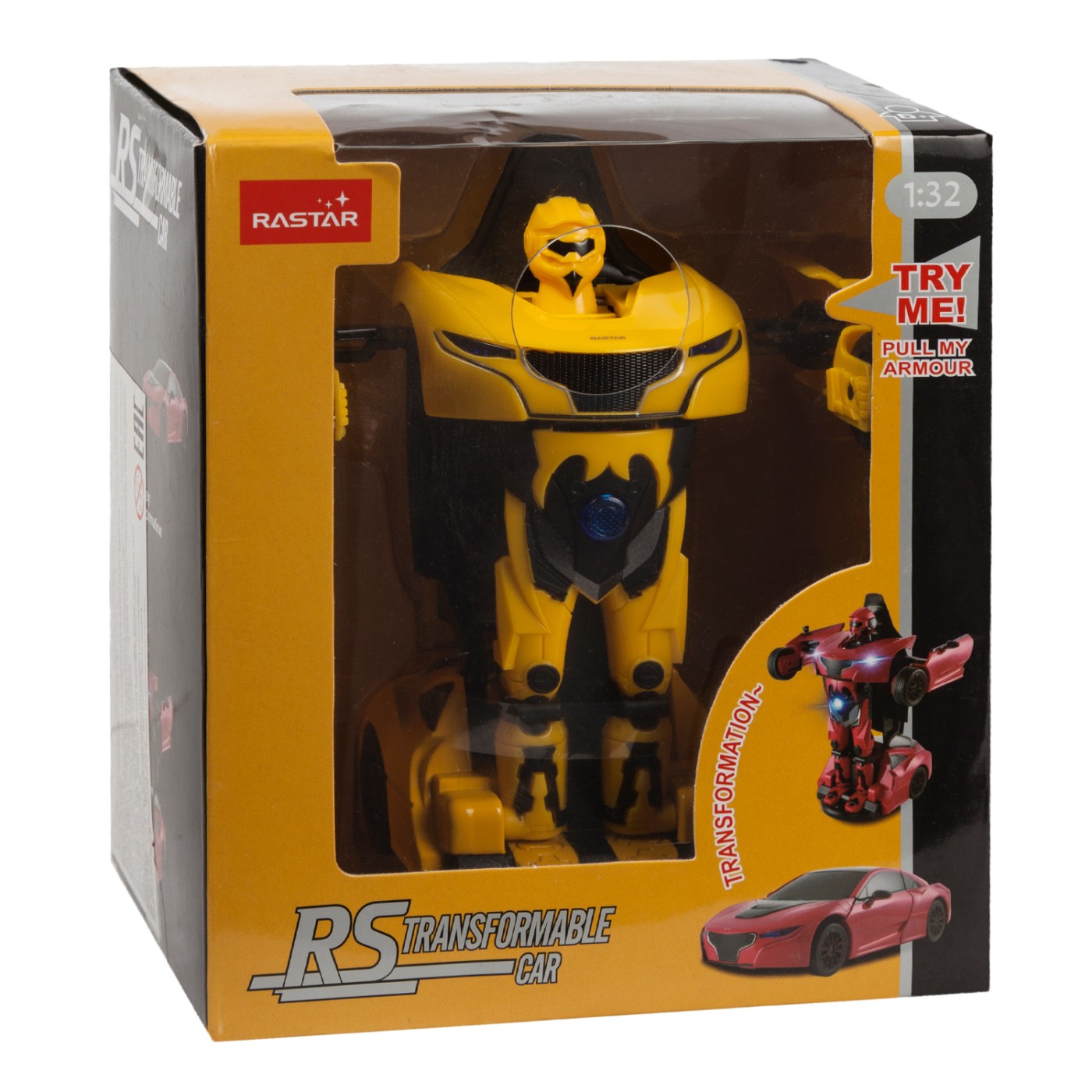 Masinuta RS Transformable este gata de a iesi din cutie! Poate fi masinuta sau robot! Efecte luminoase si sunete in timpul miscarii.Masinuta are proportiile ideale pentru momente pline de distractie si amuzament, avand dimensiunile in centimetri dupa cum urmeaza 13.5*9.5*15.5cm. Masinuta metalica RS, scara 1 la 32, are anvelope de cauciuc si un design detaliat interior-exterior realizat din material metalic turnat cu accesorii realizate din material plastic portiere de calitate superioara. Copilul dumneavoastra se poate juca in voie cu masina metalica RS oferita de brandul international Rastar. Nicio cursa nu este imposibil de castigat cu acesta masinuta, care este o replica oficiala cu licenta a modelului original, construita cu mare atentie la detalii. Pasionatii si colectionarii de machete metalice pot de asemenea aprecia aceasta macheta metalica.