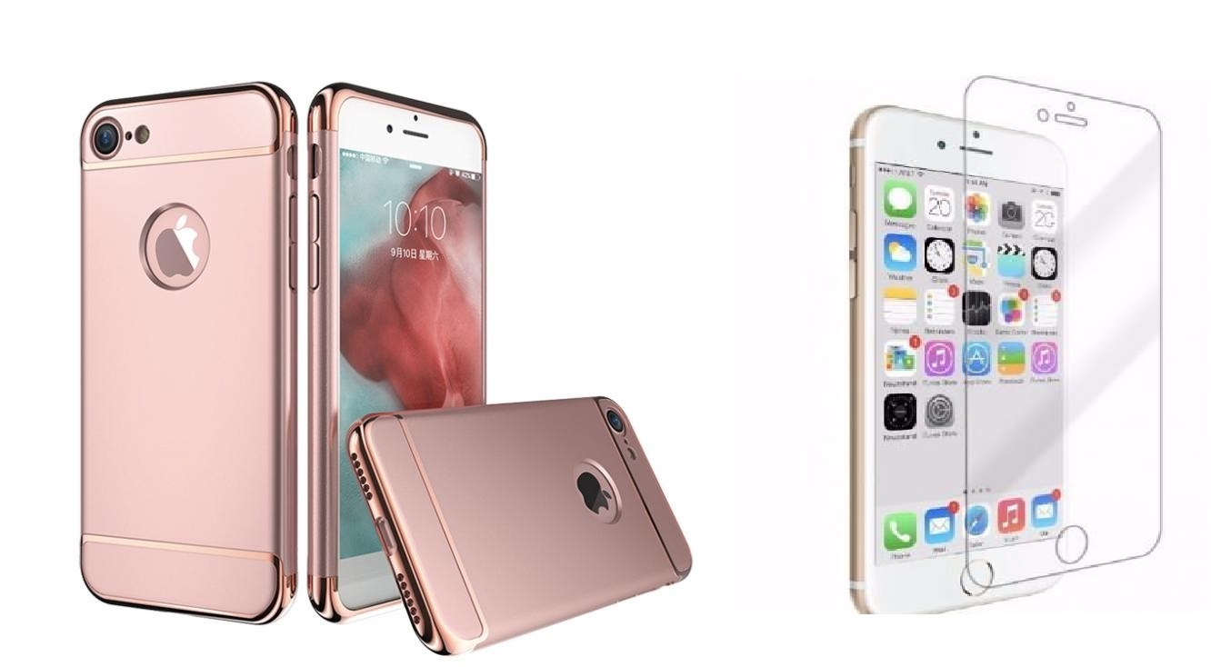 Pachet husa apple iphone 7 plus, mystyle elegance luxury 3in1 rose-gold, folie de sticla gratis