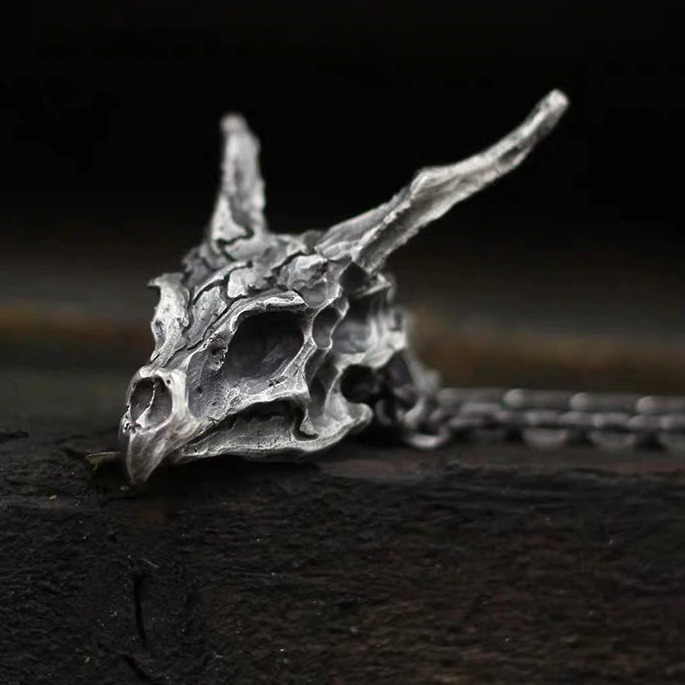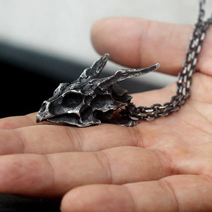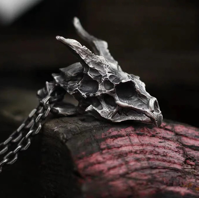 Pandantiv din inox model craniu de dragon argintiu 60cm